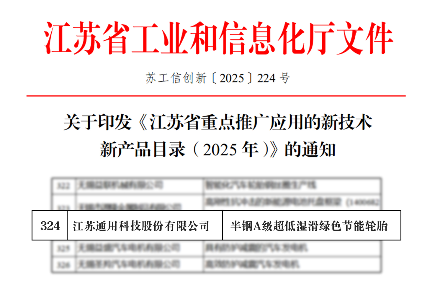 近日,2025年度江蘇省三首兩新認(rèn)定技術(shù)產(chǎn)品名單正式公示。通用股份憑借其在新能源輪胎領(lǐng)域的卓越創(chuàng)新,以《半鋼A級超低濕滑綠色節(jié)能輪胎》