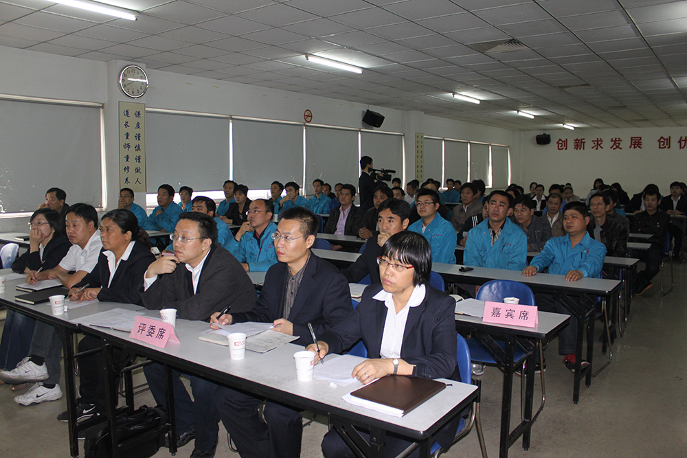 會議共分為現(xiàn)場案例展示、改善效果分析、評委現(xiàn)場提問等三大環(huán)節(jié),選手們將車間改善事例用PPT的形式展現(xiàn)出來,圖文并茂的為現(xiàn)場觀眾進行講解,并對車間改善效果進行詳細的闡述,與在場的班組代表們形成互動式交流。隨后評委對于改善效果進行現(xiàn)場評分,經(jīng)過一番激烈的角逐,來自全鋼C區(qū)的王明波以《改進升降平移式硫化機開模過程》的案例獲得了此次例會的特等獎,并以總分37.2的高分位列第一。來自小胎廠的黃海峰以及全鋼B區(qū)車間的朱恒海分獲第二、第三名。通用公司副總經(jīng)理顧亞紅對于此次例會給予了高度的肯定,并對改善案例中涌現(xiàn)的優(yōu)秀員工給予了一定的獎勵,感謝他們?yōu)檐囬g生產(chǎn)所作出的貢獻,并希望各廠區(qū)在今后的工作中能保持這種勇于創(chuàng)新、勇于改進的意識,認真的完成每一項生產(chǎn)任務,為通用的騰飛再點輝煌。