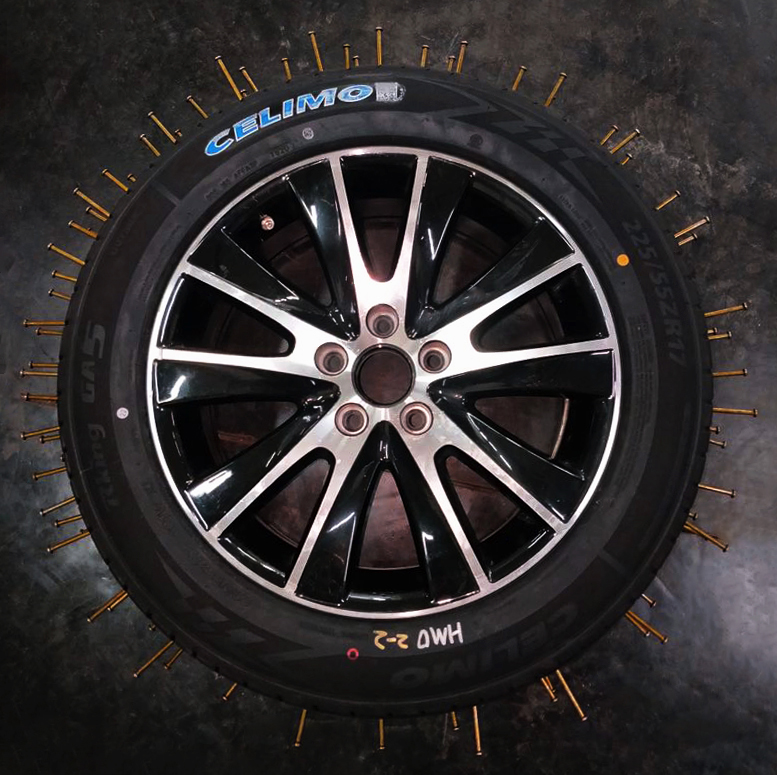 千里馬抗扎胎100根釘子扎胎實驗 ▲