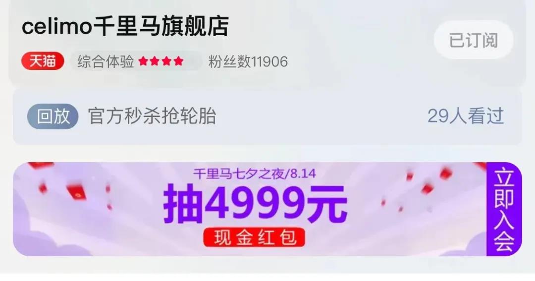 即日起至8月14日20:00點前,消費者只要關注紅豆集團旗下品牌如“celimo千里馬”天貓官方旗艦店,成為會員并消費(不限金額)即可獲得4999元超大紅包的抽取資格。