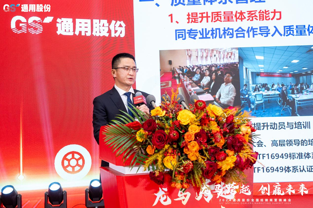 因勢而謀,順勢而為;前瞻布局,方能遠(yuǎn)行。通用股份董事長顧萃做總結(jié)講話,感謝經(jīng)銷商朋友們長期以來和通用股份的攜手共進(jìn)和互相支持。他強(qiáng)調(diào)在周期突變要做好戰(zhàn)略謀劃,保持戰(zhàn)略定力,增強(qiáng)發(fā)展信心。近年來公司加速產(chǎn)業(yè)轉(zhuǎn)型升級,成功打造海外雙基地、國內(nèi)半鋼“黑燈車間”、全鋼“5G碳云工廠”高端智造模式引領(lǐng)行業(yè)升級,2023年通用股份營業(yè)收入、全球銷量和盈利能力實(shí)現(xiàn)新增長。展望2024,公司將重點(diǎn)“打造三項(xiàng)工程、錘煉五種能力”,即品牌工程、人才工程、5X基地工程,研發(fā)能力、營銷能力、制造能力、降本能力、組織能力,強(qiáng)基固本激發(fā)活力,加速“百億通用”步伐,與各位經(jīng)銷商堅定信心、龍馬跨越,緊咬目標(biāo)不放松,開啟高質(zhì)發(fā)展新征程!