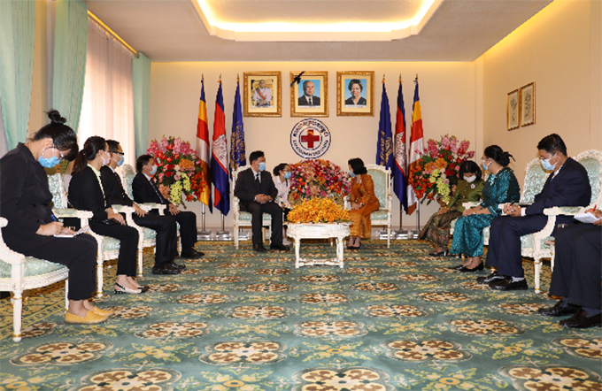 柬埔寨王國當地時間4月1日下午4:00(北京時間17:00),一場“紅豆集團捐贈柬埔寨紅十字會100萬只口罩接收儀式”正在柬埔寨紅十字會會長、柬埔寨王國首相洪森夫人文拉尼親王的辦公室內舉行。中國駐柬埔寨大使館經濟商務參贊處參贊鄔國權、西哈努克港經濟特區公司總經理曹建江和柬埔寨紅十字會副會長ANY SOKAN、秘書長POM CHANNY,柬埔寨紅十字會衛生局局長SOK LONG等出席活動。
